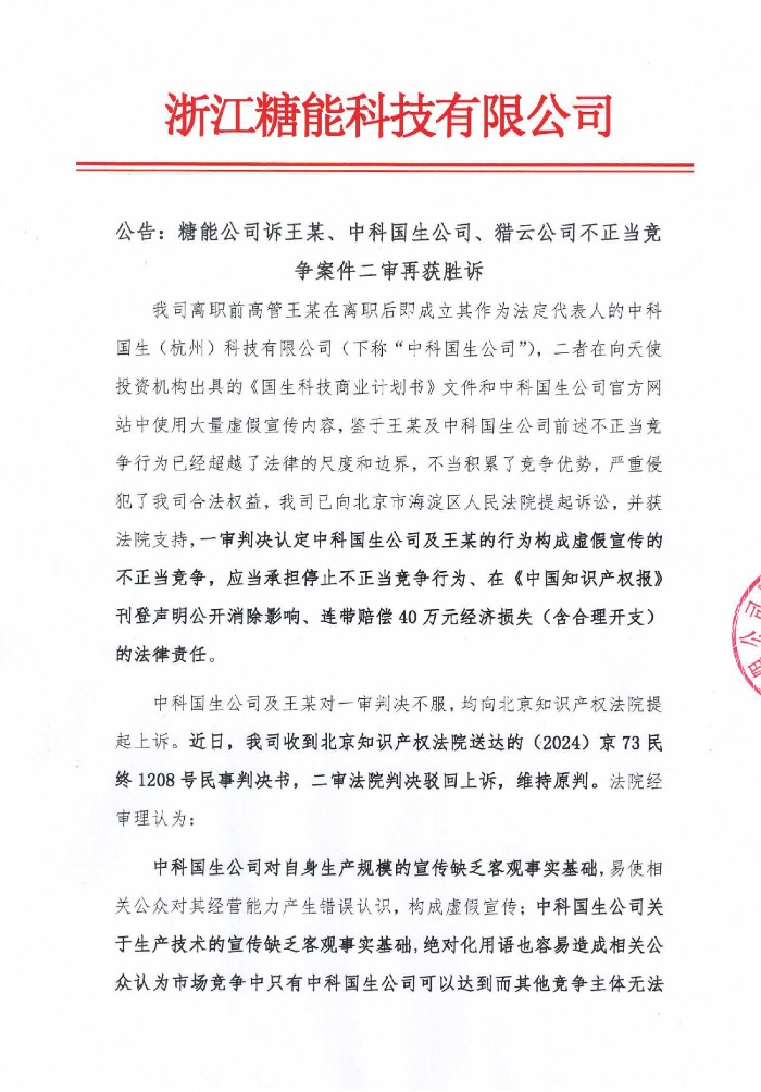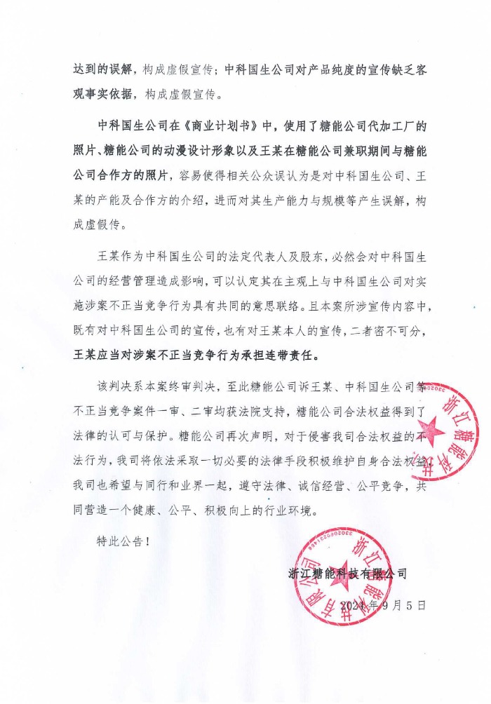 Maison / Nouvelles / Actualités de l'entreprise / Annonce : Sugar Energy a remporté le deuxième procès dans l'affaire de concurrence déloyale contre Wang, la société Zhongke Guosheng et la société Lieyun.